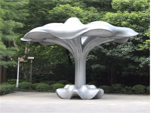 異型花朵采用工廠預(yù)制,現(xiàn)場組裝的施工工藝,表面做銀色氟碳噴涂處理